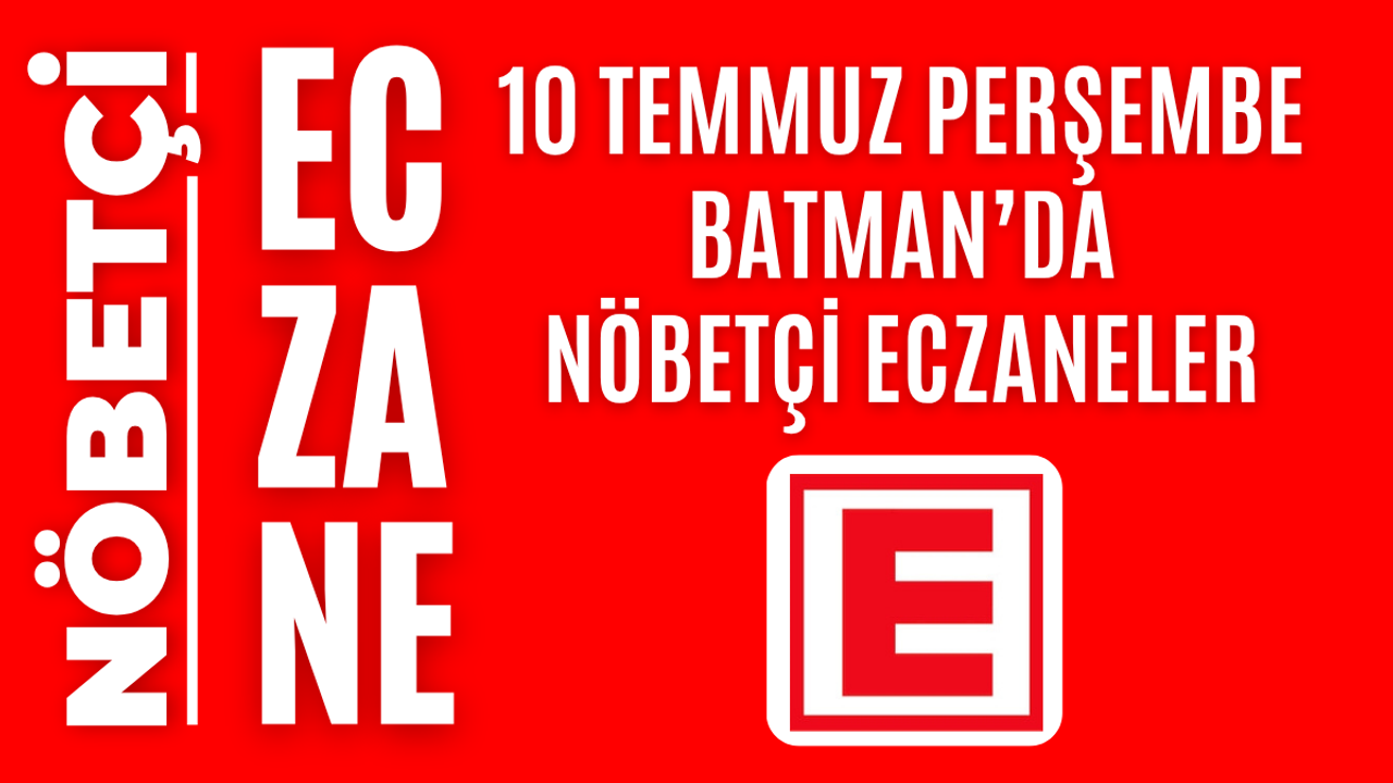 İşte Batman’da 10 Temmuz Perşembe günü açık olacak olan tüm nöbetçi eczanelerin isimleri, adresleri ve iletişim bilgileri…