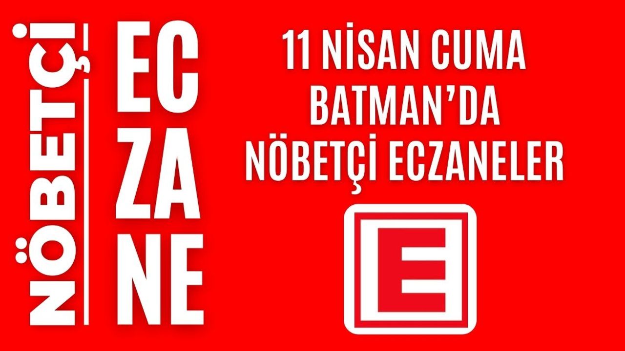 İşte Batman ve ilçelerinde 11 Nisan Cuma günü açık olacak olan tüm nöbetçi eczanelerin isimleri, adresleri ve iletişim bilgileri…