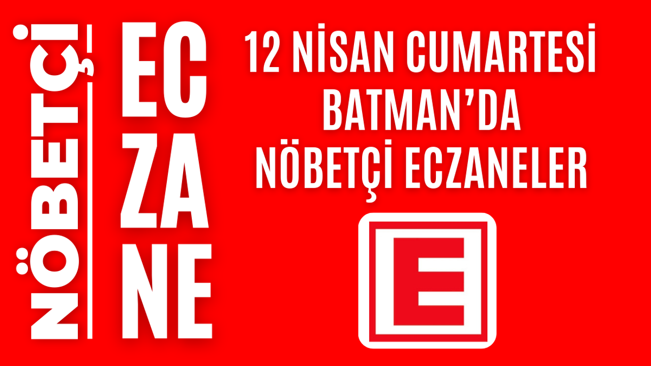 İşte Batman ve ilçelerinde 12 Nisan Cumartesi günü açık olacak olan tüm nöbetçi eczanelerin isimleri, adresleri ve iletişim bilgileri…