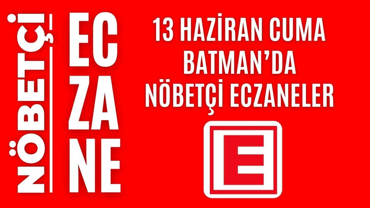 İşte Batman ve ilçelerinde 13 Haziran Cuma günü açık olacak olan tüm nöbetçi eczanelerin isimleri, adresleri ve iletişim bilgileri…