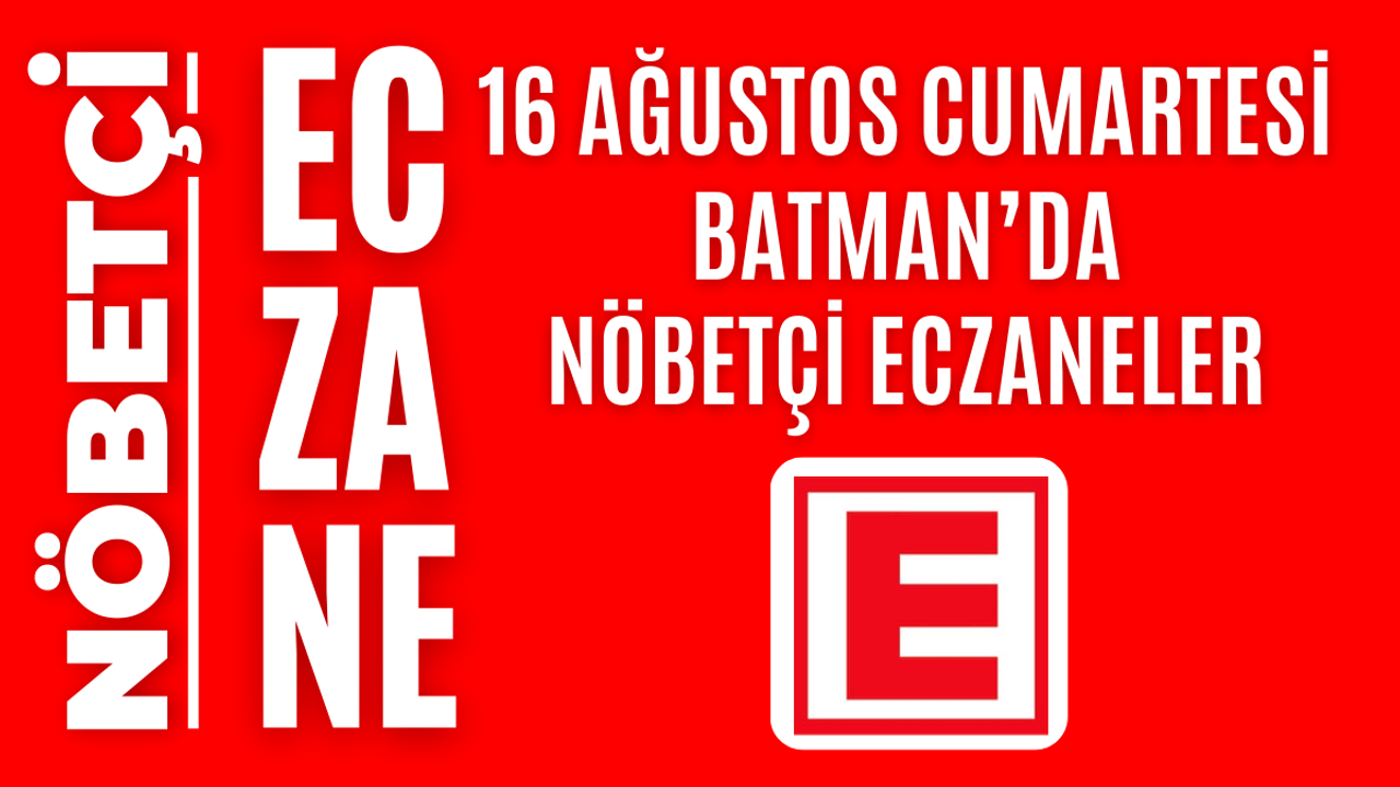 İşte Batman’da 16 Ağustos Cumartesi günü açık olacak olan tüm nöbetçi eczanelerin isimleri, adresleri ve iletişim bilgileri…