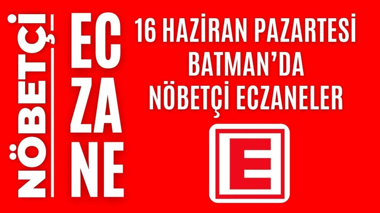 İşte Batman ve ilçelerinde 16 Haziran Pazartesi günü açık olacak olan tüm nöbetçi eczanelerin isimleri, adresleri ve iletişim bilgileri…