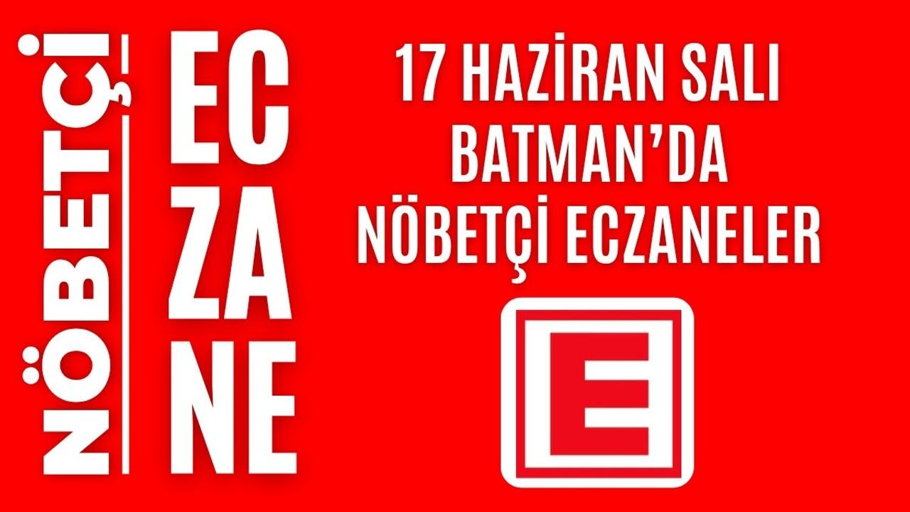 İşte Batman ve ilçelerinde 17 Haziran Salı günü açık olacak olan tüm nöbetçi eczanelerin isimleri, adresleri ve iletişim bilgileri…