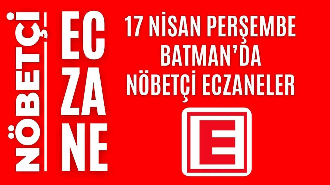İşte Batman ve ilçelerinde 17 Nisan Perşembe günü açık olacak olan tüm nöbetçi eczanelerin isimleri, adresleri ve iletişim bilgileri…
