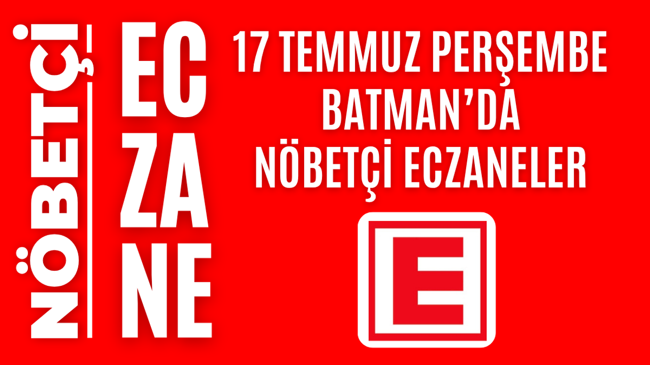 İşte Batman’da 17 Temmuz Perşembe günü açık olacak olan tüm nöbetçi eczanelerin isimleri, adresleri ve iletişim bilgileri…