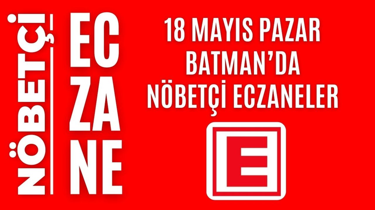 İşte Batman ve ilçelerinde 18 Mayıs Pazar günü açık olacak olan tüm nöbetçi eczanelerin isimleri, adresleri ve iletişim bilgileri…