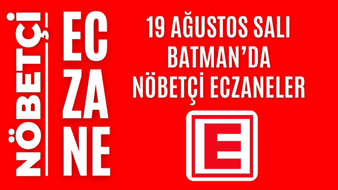 İşte Batman’da 19 Ağustos Salı günü açık olacak olan tüm nöbetçi eczanelerin isimleri, adresleri ve iletişim bilgileri…