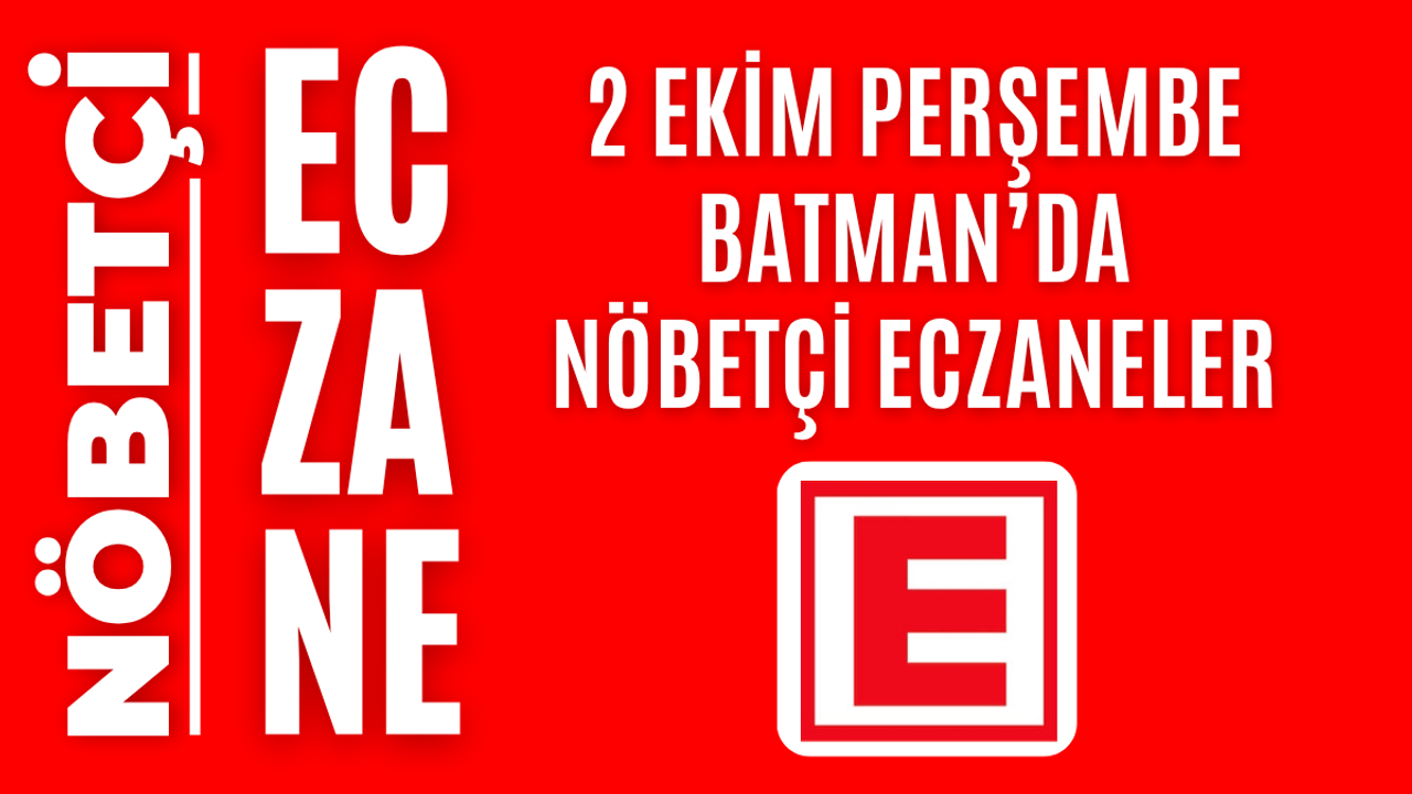 İşte Batman’da 2 Ekim Perşembe günü açık olacak olan tüm nöbetçi eczanelerin isimleri, adresleri ve iletişim bilgileri…