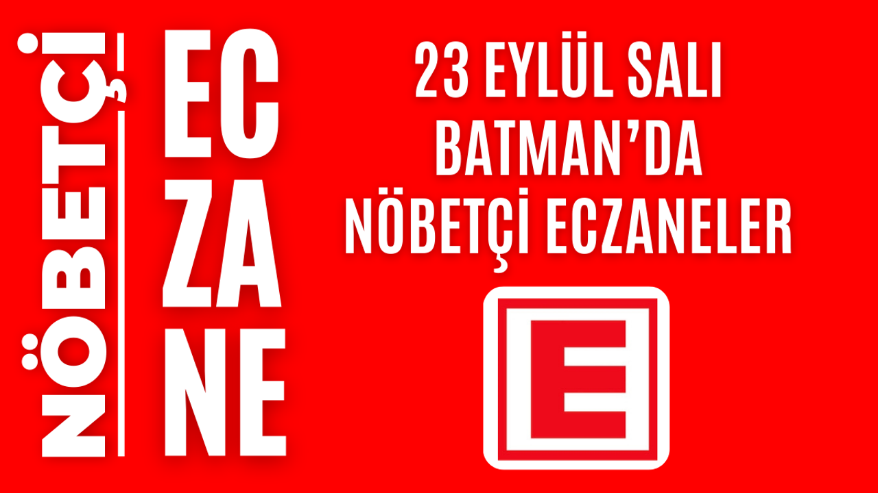İşte Batman’da 23 Eylül Salı günü açık olacak olan tüm nöbetçi eczanelerin isimleri, adresleri ve iletişim bilgileri…