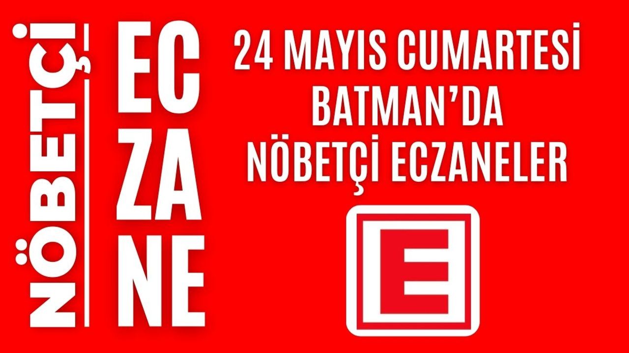 İşte Batman ve ilçelerinde 24 Mayıs Cumartesi günü açık olacak olan tüm nöbetçi eczanelerin isimleri, adresleri ve iletişim bilgileri…