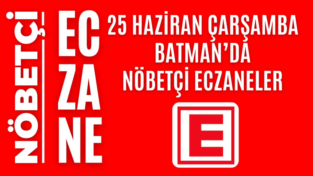 İşte Batman ve ilçelerinde 25 Haziran Çarşamba günü açık olacak olan tüm nöbetçi eczanelerin isimleri, adresleri ve iletişim bilgileri…