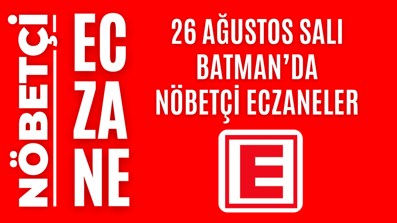 İşte Batman’da 26 Ağustos Salı günü açık olacak olan tüm nöbetçi eczanelerin isimleri, adresleri ve iletişim bilgileri…