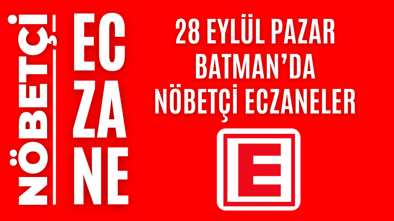 İşte Batman’da 28 Eylül Pazar günü açık olacak olan tüm nöbetçi eczanelerin isimleri, adresleri ve iletişim bilgileri…