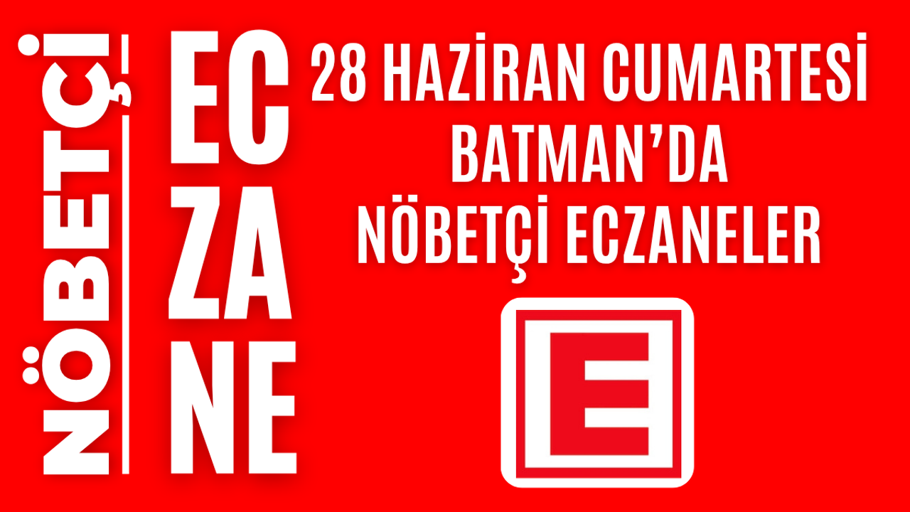 İşte Batman ve ilçelerinde 28 Haziran Cumartesi günü açık olacak olan tüm nöbetçi eczanelerin isimleri, adresleri ve iletişim bilgileri…