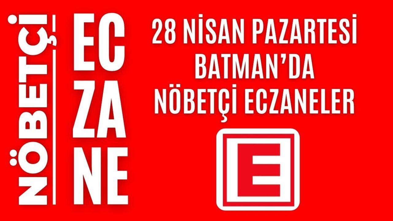 İşte Batman ve ilçelerinde 28 Nisan Pazartesi günü açık olacak olan tüm nöbetçi eczanelerin isimleri, adresleri ve iletişim bilgileri…