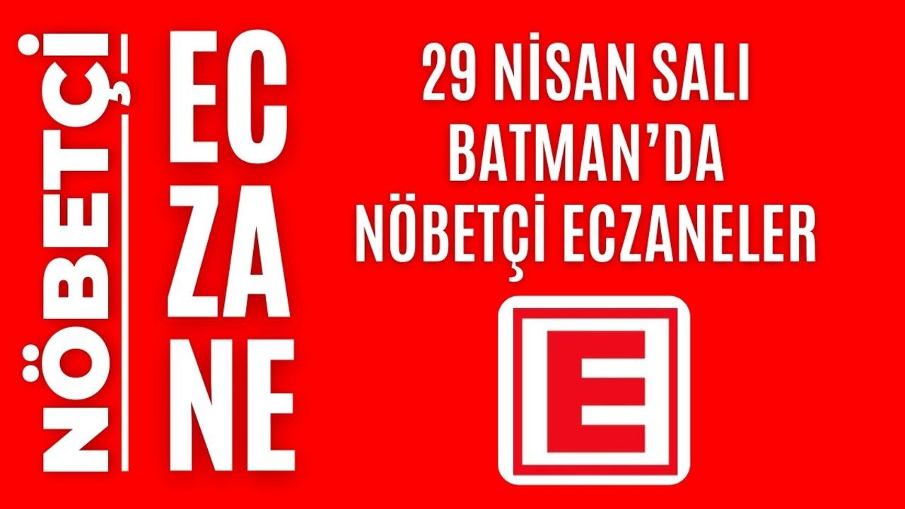 İşte Batman ve ilçelerinde 29 Nisan Salı günü açık olacak olan tüm nöbetçi eczanelerin isimleri, adresleri ve iletişim bilgileri…
