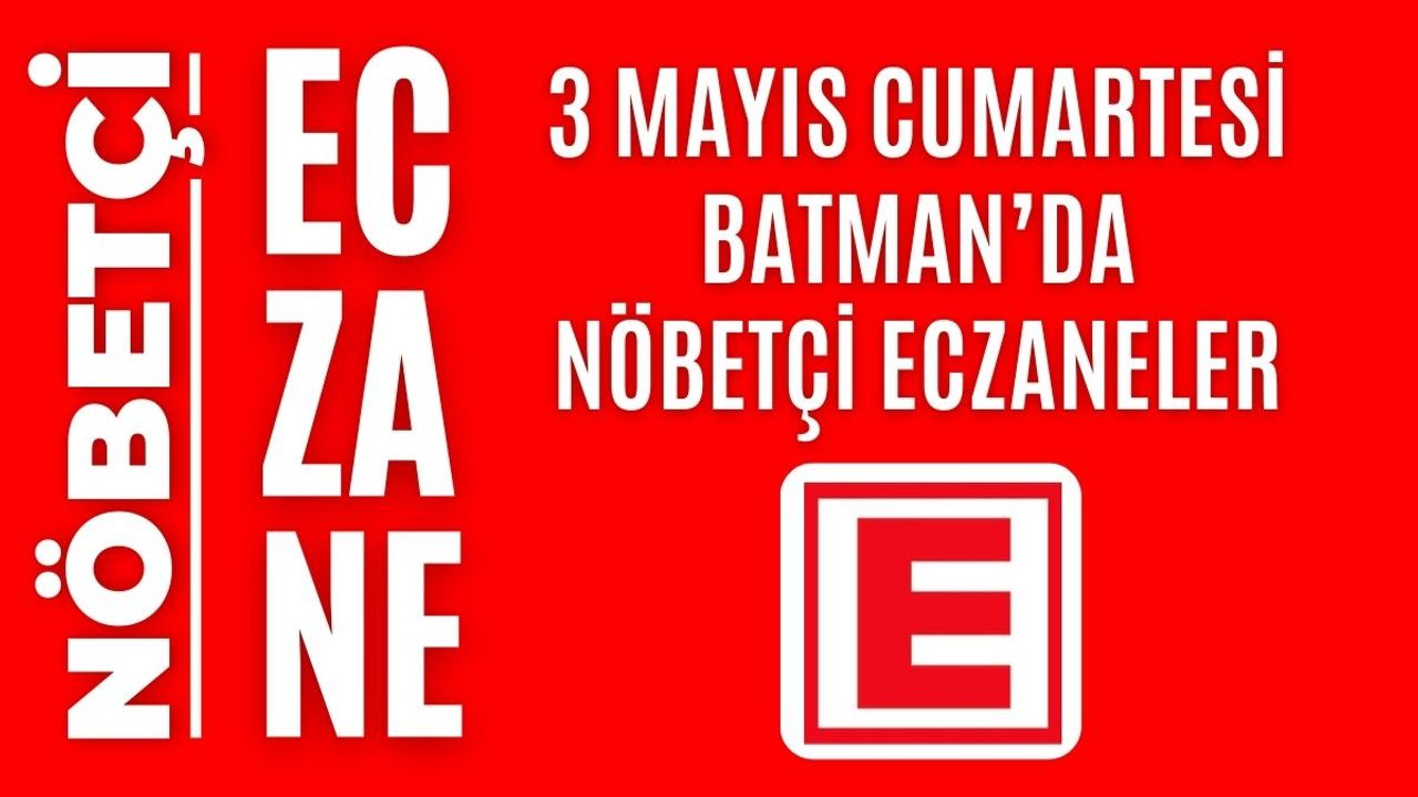 İşte Batman ve ilçelerinde 3 Mayıs Cumartesi günü açık olacak olan tüm nöbetçi eczanelerin isimleri, adresleri ve iletişim bilgileri…