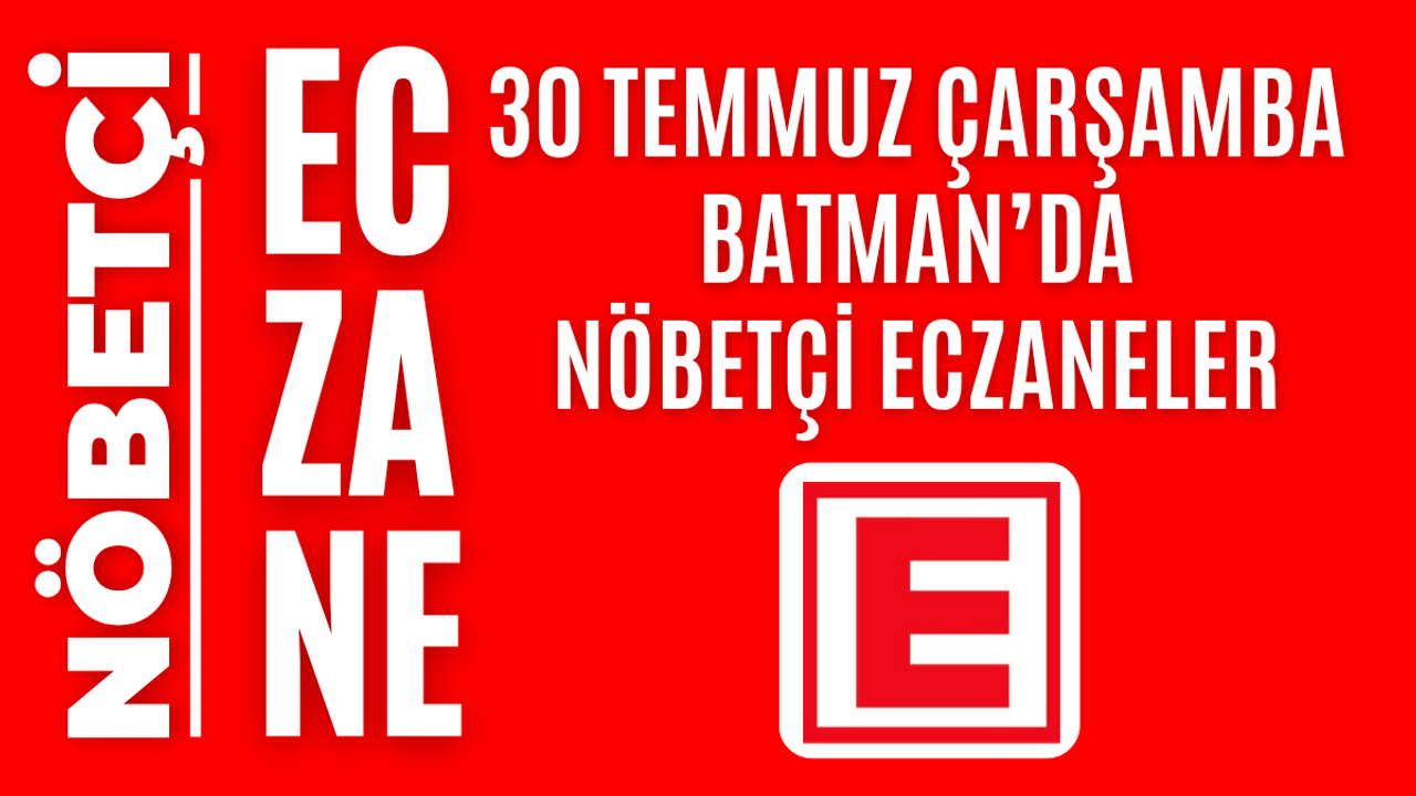 İşte Batman’da 30 Temmuz Çarşamba günü açık olacak olan tüm nöbetçi eczanelerin isimleri, adresleri ve iletişim bilgileri…