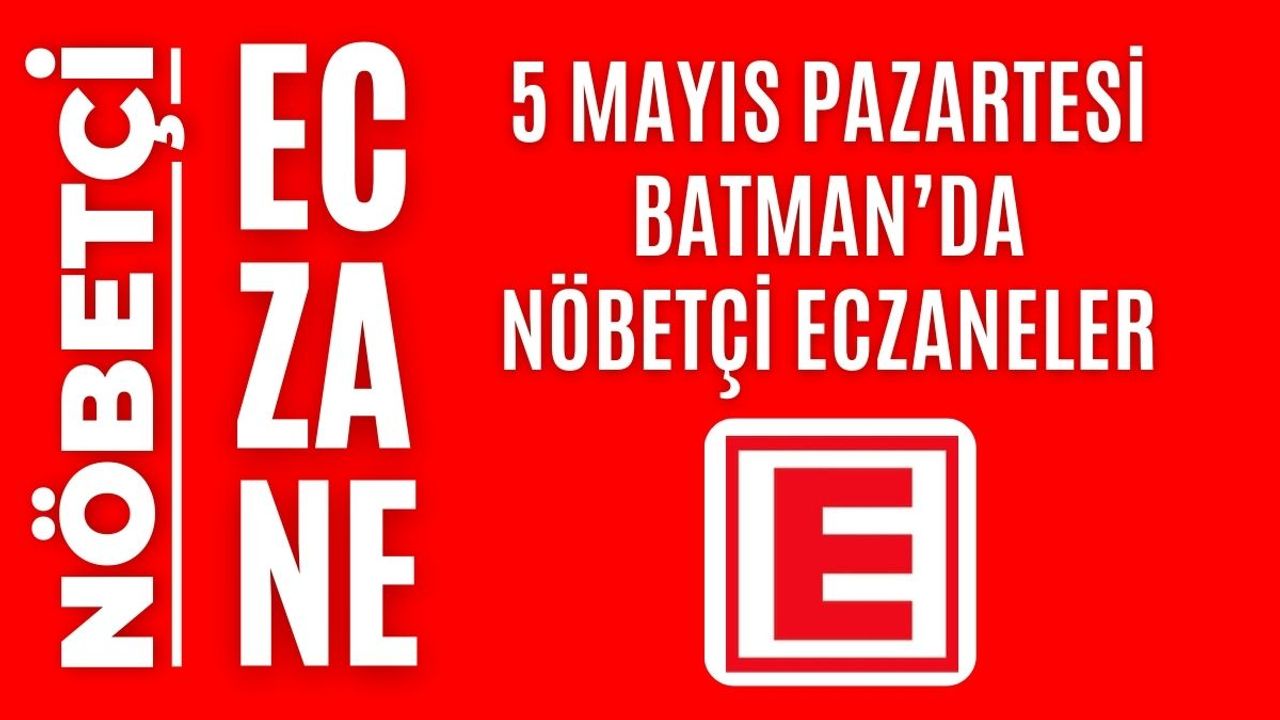 İşte Batman ve ilçelerinde 5 Mayıs Pazartesi günü açık olacak olan tüm nöbetçi eczanelerin isimleri, adresleri ve iletişim bilgileri…