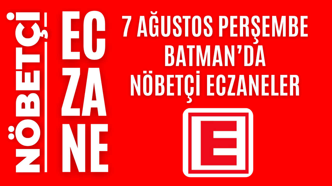 İşte Batman’da 7 Ağustos Perşembe günü açık olacak olan tüm nöbetçi eczanelerin isimleri, adresleri ve iletişim bilgileri…