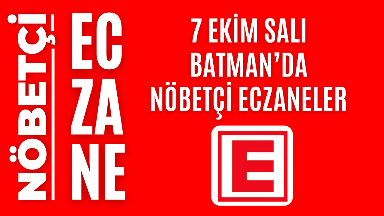 İşte Batman’da 7 Ekim Salı günü açık olacak olan tüm nöbetçi eczanelerin isimleri, adresleri ve iletişim bilgileri…