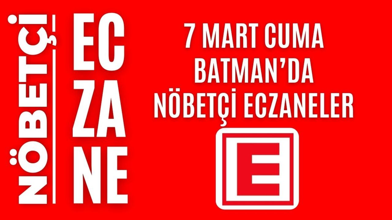 İşte Batman ve ilçelerinde 7 Mart Cuma günü açık olacak olan tüm nöbetçi eczanelerin isimleri, adresleri ve iletişim bilgileri…