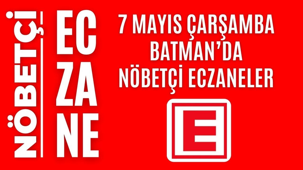 İşte Batman ve ilçelerinde 7 Mayıs Çarşamba günü açık olacak olan tüm nöbetçi eczanelerin isimleri, adresleri ve iletişim bilgileri…