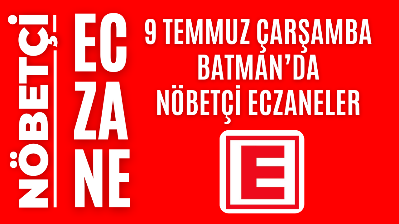 İşte Batman’da 9 Temmuz Çarşamba günü açık olacak olan tüm nöbetçi eczanelerin isimleri, adresleri ve iletişim bilgileri…
