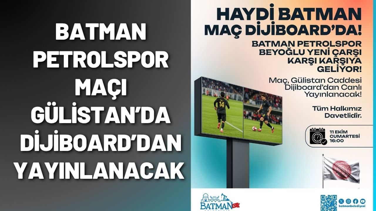 Karşılaşma, 11 Ekim Cumartesi günü saat 16.00’da başlayacak. Belediyenin kurduğu dev dijital ekranda maç canlı olarak yayınlanacak. Etkinliğe yoğun katılım beklenirken, Batmanlıların deplasman heyecanını kendi şehirlerinde, birlikte yaşaması hedefleniyor.