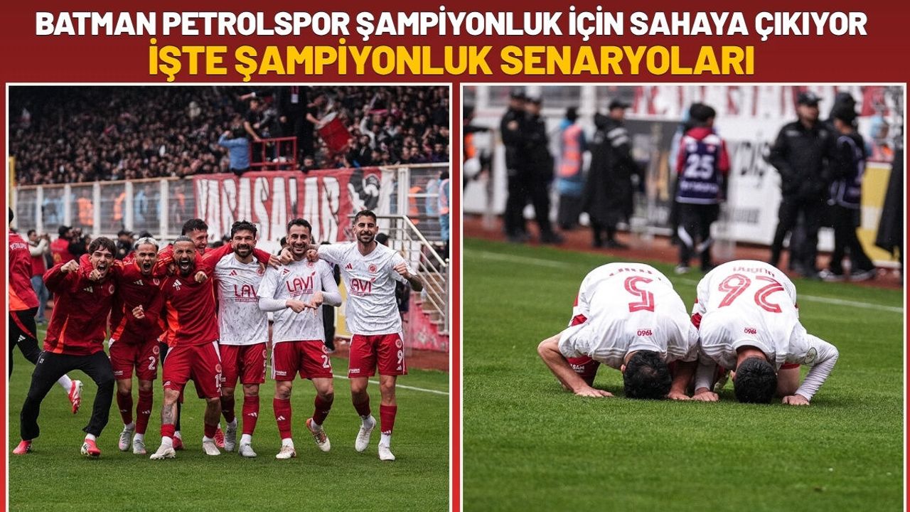 1. Senaryo (Kesin Şampiyonluk): Batman Petrolspor, Ankara’da Sincan Belediyesi Ankaraspor’u devirirse puanını 79 yapacak. Aynı saatlerde Muğlaspor kendi evinde Karacabey Belediyespor’u yense dahi ligin bitimine 3 maç kala Batman Petrolspor şampiyonluğunu ilan edecek!