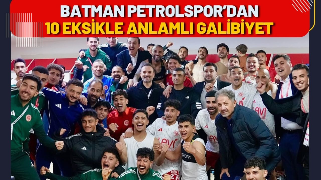 Lige şampiyonluk parolasıyla başlayan Batman Petrolspor’da 10 oyuncu eksik olmasına rağmen kalan oyuncuların canla başla mücadele ederek 90 dakika sonunda 2-1 galip gelmesi Batmanlı taraftarları çok mutlu etti.