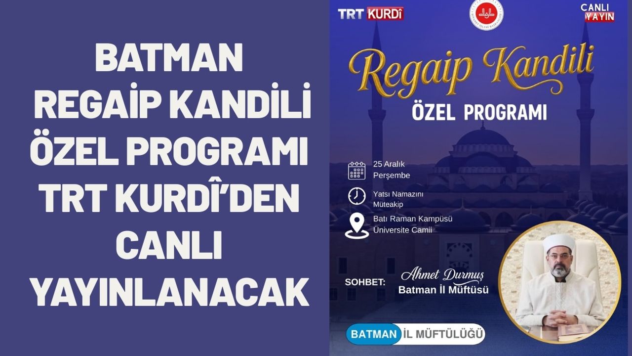 Batman’daki bu manevi buluşma, sadece camideki cemaatle sınırlı kalmayacak. Program, 20.00 ile 22.00 saatleri arasında TRT Kurdî ekranlarından "Canlı Yayın" ile tüm dünyaya ulaştırılacak. Bu sayede camiye gidemeyen vatandaşlar da ekranları başından bu özel gecenin feyzinden ortaklaşa yararlanma imkanı bulacak.