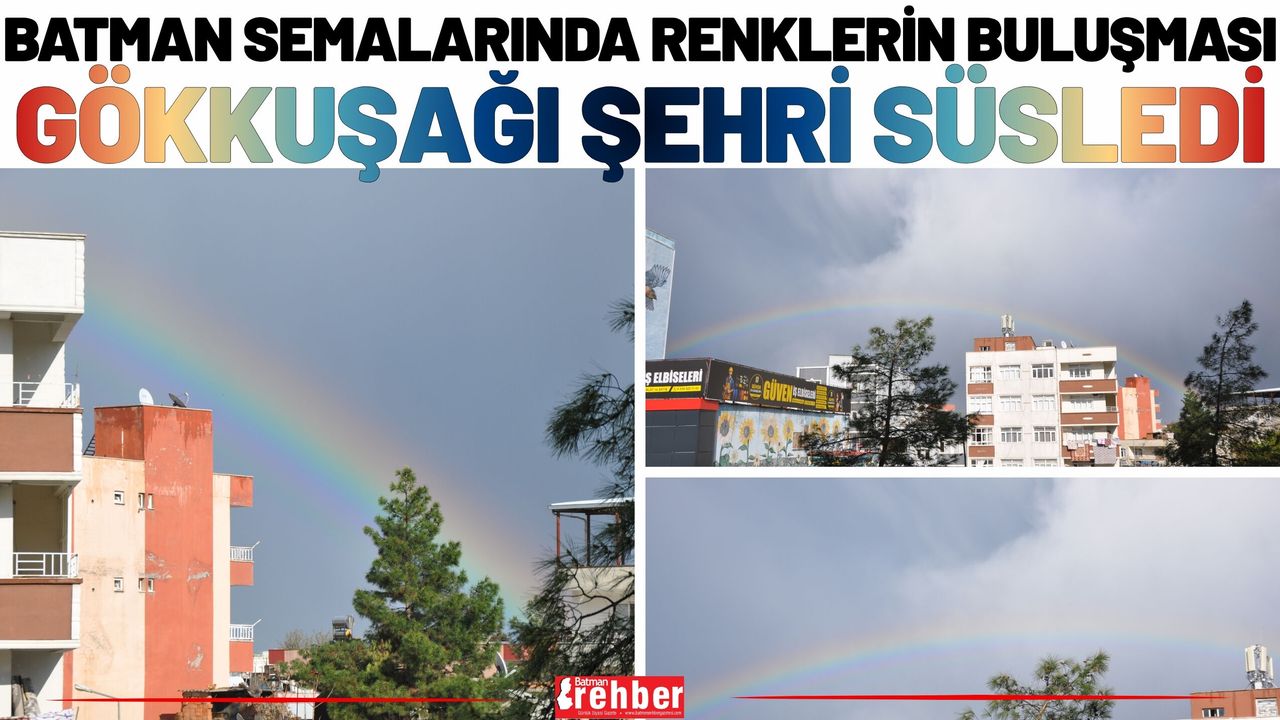 Bölge genelinde etkili olan yağışlı hava, Batman merkezde yerini kısa süreli güneşli bir havaya bıraktı. Yağmur damlalarının güneş ışınlarıyla buluşması sonucu kentin semalarını süsleyen gökkuşağı, binaların üzerinden geçerek adeta bir kuşak gibi şehri sardı.