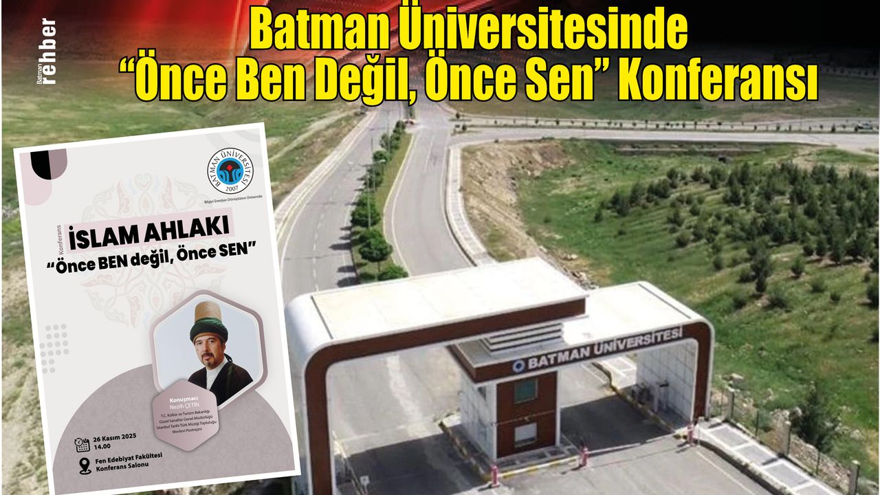 Batman Üniversitesi, İslam Ahlakı Konferans serilerine yeni bir halka ekliyor. Üniversite, İslam ve Tasavvuf kültürünün temel değerlerini ele alan “Önce Ben Değil, Önce Sen” başlıklı özel bir konferans düzenleyecek.