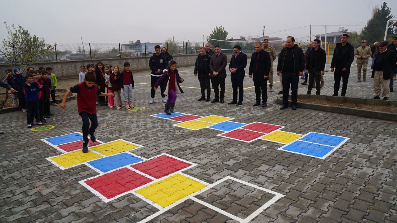 Batman Üniversitesi Spor Bilimleri Fakültesi öğretim elemanı ve öğrencileri, Beşiri ilçesine bağlı Yenipınar Köyü İlk ve Ortaokulu’nun bahçesinde kapsamlı bir oyun alanı çizim çalışması gerçekleştirdi. Çocukların fiziksel, sosyal ve bilişsel gelişimlerini desteklemeyi hedefleyen çalışma kapsamında; seksek alanları, denge ve koordinasyon hatları, şekil bazlı zemin oyunları, motor beceri istasyonları ve geleneksel çocuk oyunlarına uygun hareket alanları okul bahçesine kazandırıldı.
