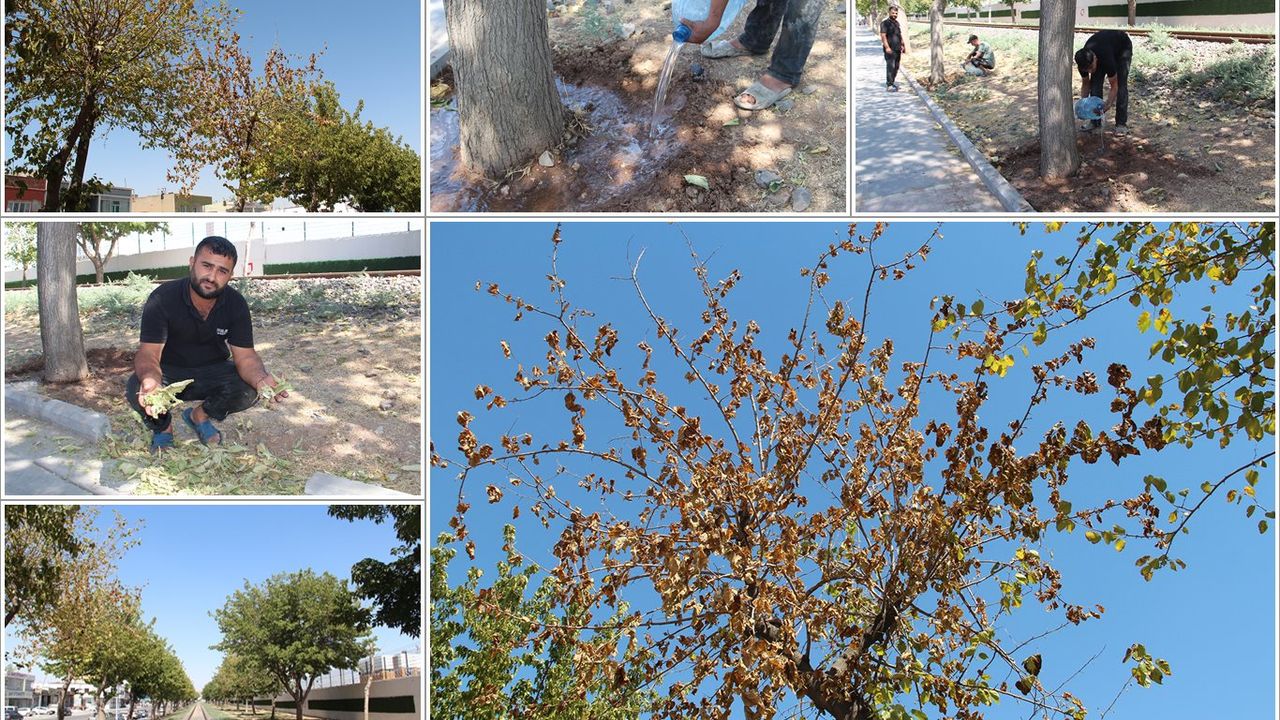 Batman'ın Cumhuriyet Mahallesi Milli Egemenlik Bulvarı'nda bulunan ve yaklaşık 25 yıl önce dikilen onlarca ağaç, susuzluk nedeniyle birer birer kuruyor.