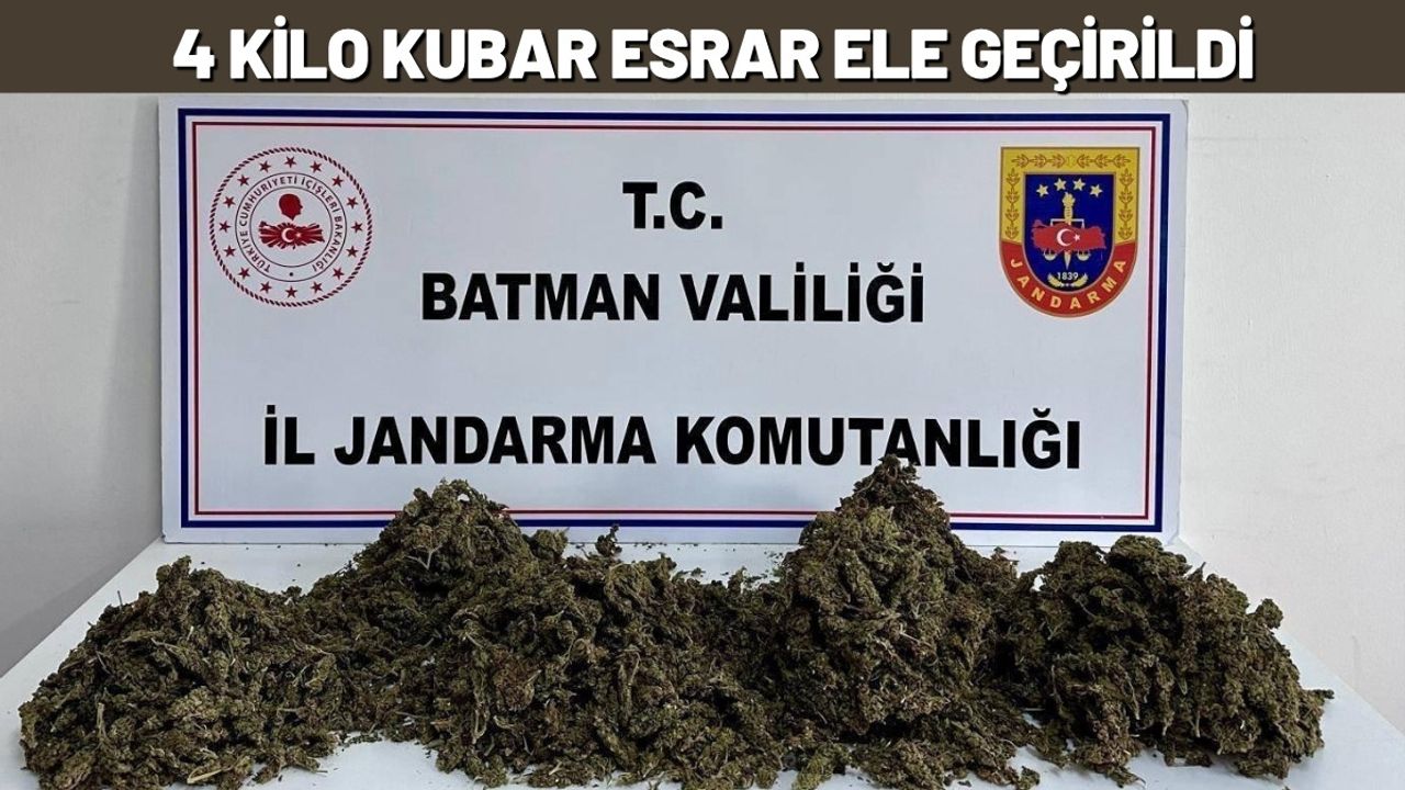 Alınan istihbaratın ardından harekete geçen jandarma ekipleri, şüpheli B.İ.’ye ait aracı belirleyerek durdurdu. Araçta yapılan detaylı aramada tam 4 kilogram kubar esrar maddesi ele geçirildi. Ele geçirilen uyuşturucu maddeye el konulurken, olayla ilgili adli işlem başlatıldı.