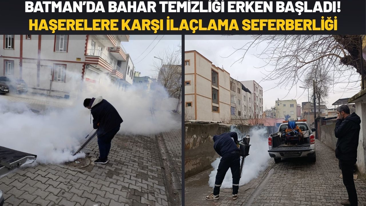 Batman Belediyesi, bahar mevsimi öncesinde halk sağlığını korumak ve haşere popülasyonunun artmasını engellemek amacıyla kent genelinde "ilaçlama seferberliği" başlattı. Veteriner İşleri Müdürlüğü koordinasyonunda yürütülen çalışmalarda, sinek ve haşerelerin üreme kaynakları kurutuluyor.