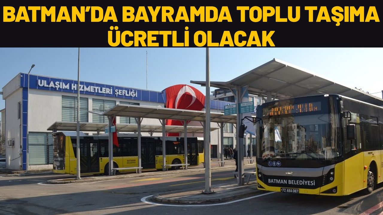 Batman Belediyesi bünyesinde hizmet veren toplu taşıma araçlarının bayram programı netleşti. Edinilen bilgilere göre, geçmiş yıllarda bayram süresince vatandaşlara ücretsiz ulaşım imkânı sağlayan belediye, bu yılki uygulamada değişikliğe giderek otobüs seferlerini ücretli hale getirdi.