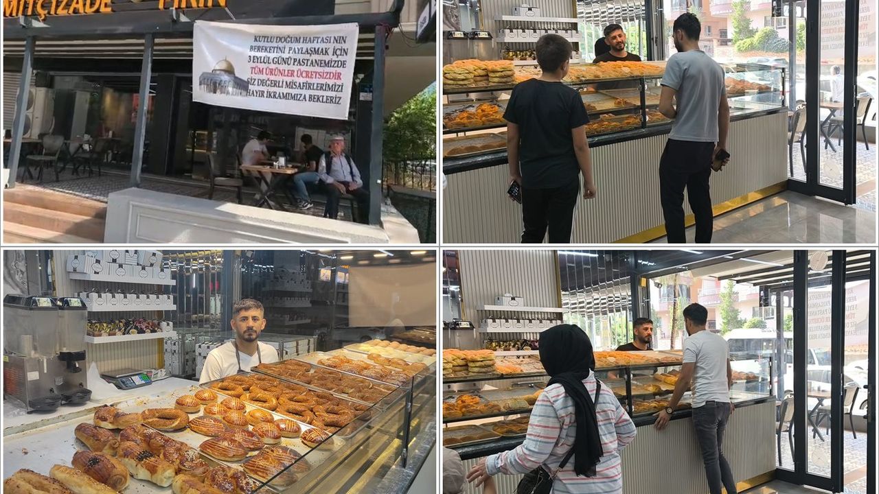 "Gültepe Mahallesi'nde pastane, kafe tarzında bir yer işletiyorum. Mevlid Kandili olması nedeniyle hayır amacıyla böyle bir pankart astık. Tüm halkımızı bekliyoruz. Bugün kandil dolayısıyla tüm ürünlerimiz bedavadır. Bunu Allah rızası için yaptık. İnşallah bu durum, hayır için vesile olur."
