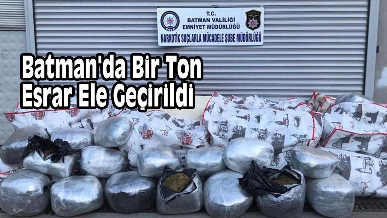 Yapılan bir ihbarı değerlendiren Batman İl Emniyet Müdürlüğü ekipleri tarafından durdurulan bir TIR'da yapılan aramada plastik borular arasına gizlenmiş bir ton esrar maddesi ele geçirildi.Batman girişinde durdurulan A.Y. yönetimindeki 71 EV 671 plakalı TIR'da narkotik köpek ile yapılan aramada plastik borular arsına gizlenmiş bir ton esrar maddesi bulundu.