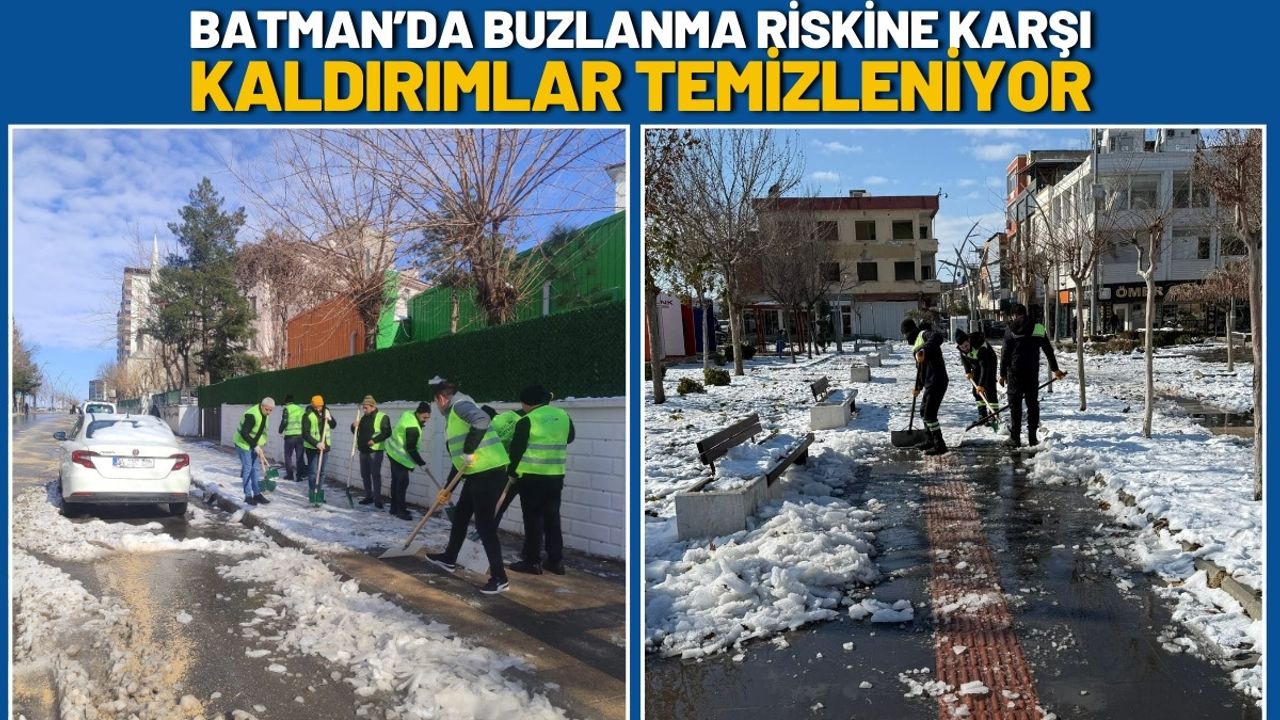Vatandaşların kaldırımlarda daha güvenli hareket edebilmesi için don olayları öncesinde temizlik çalışmaları yapılırken, eriyen kar sularının birikmesini önlemek amacıyla yağmur suyu ızgaraları da temizleniyor. Soğuk hava dalgasının etkisini sürdürdüğü Batman’da, ekiplerin yaya ve araç trafiğinin sağlıklı şekilde devam etmesi için düzenli kontrollerini sürdürdüğü bildirildi.