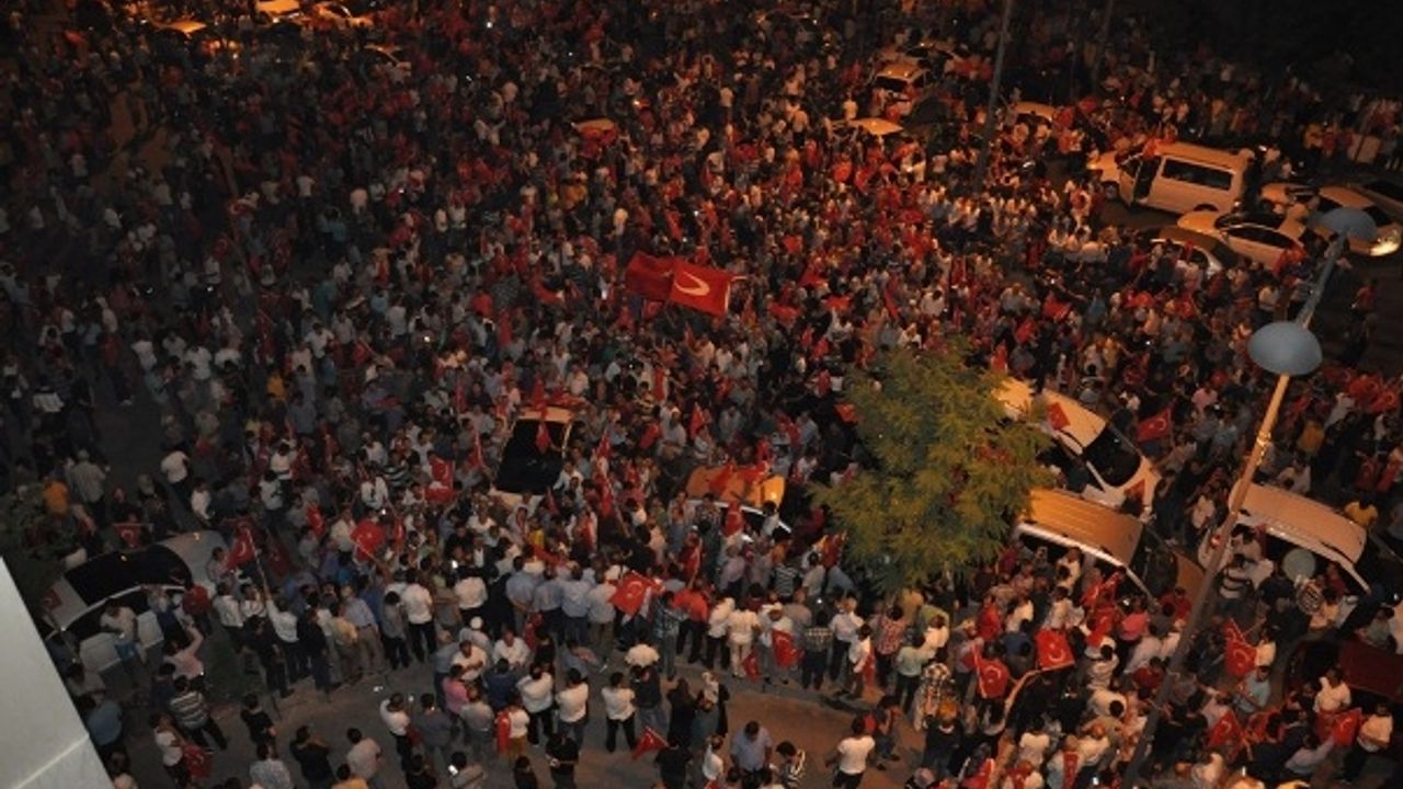 Valilik ve Emniyet Binası önünde bir araya gelen on binden fazla kişi, Türkiye Bayrağı ve tevhit bayraklarıyla darbeye karşı 'hayır' dedi. Polis ve özel hareket timleri Valilik önünde beklerken, sabaha kadar vatandaşlar slogan atarak dualar okudu. Cami minarelerinde okunan sala ve anonslarla darbeye karşı halkın tepki göstermesi ve sokaklara inmesi çağrısında bulunuldu.