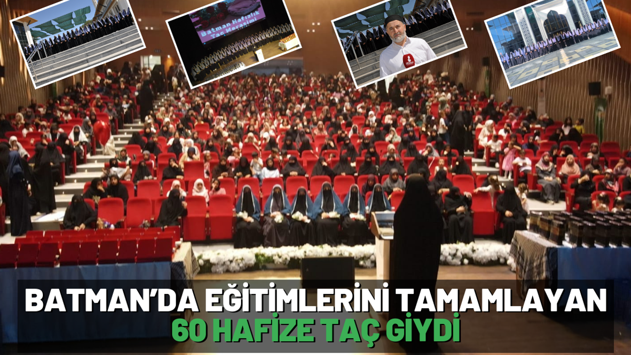 Batman’da İttihadul Ulema bünyesindeki kız medreselerinde hafızlık eğitimini tamamlayan 60 genç kız için taç giyme töreni düzenlendi. Hatice Nasıroğlu Konferans Salonu’nda gerçekleştirilen program, aileler ve davetlilerin yoğun katılımıyla coşkulu bir atmosfere sahne oldu. Hafızlık eğitimi sürecini başarıyla tamamlayan öğrenciler, Kur’an-ı Kerim’i ezberlemenin gururunu yaşadı.