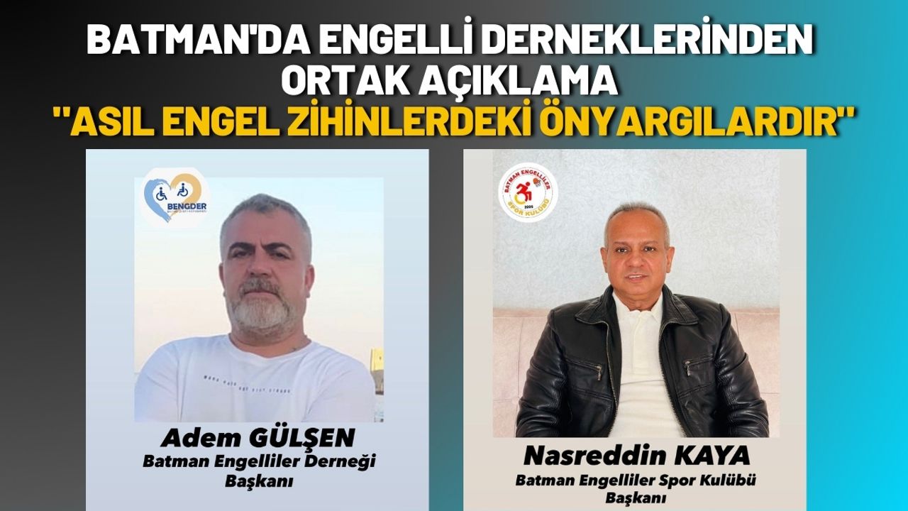 Batman’da engelli vatandaşları temsil eden iki köklü kurum, 3 Aralık Dünya Engelliler Günü’nde tek ses oldu. Yapılan ortak açıklamada, Birleşmiş Milletler tarafından kabul edilen bu özel günün, sadece bir kutlama değil; haklar, topluma katılım ve yaşam standartlarının yükseltilmesi için bir farkındalık günü olduğu hatırlatıldı.