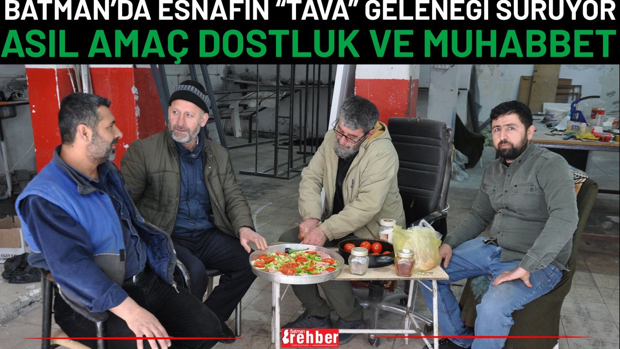 Batman’da Mehtap civarındaki çarşı esnafı, uzun yıllardır devam eden bir geleneği yaşatmaya devam ediyor. Komşu esnaflar, haftada bir ya da iki kez bir araya gelerek tava yemeği hazırlıyor. Hazırlanan yemekler mahalledeki fırına gönderiliyor, piştikten sonra ise esnaflardan birinin iş yerinde hep birlikte yeniliyor. Yemek sonrası çaylar içiliyor, sohbetler ediliyor.