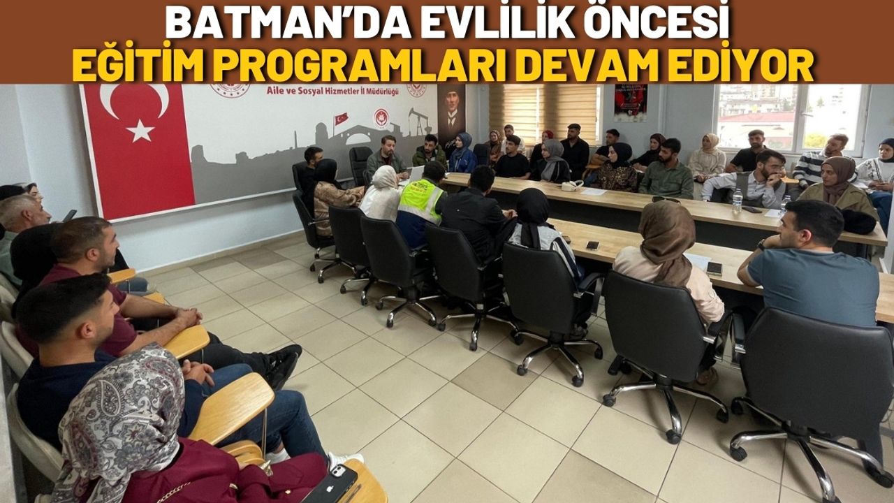 Batman Aile ve Sosyal Hizmetler İl Müdürlüğü’ne bağlı Batman Sosyal Hizmet Merkezi Müdürlüğü Eğitim ve Danışmanlık Birimi, İl Sağlık Müdürlüğü iş birliğiyle “Evlenecek Gençlerin Desteklenmesi Projesi” kapsamında Evlilik Öncesi Eğitim Programı düzenledi.