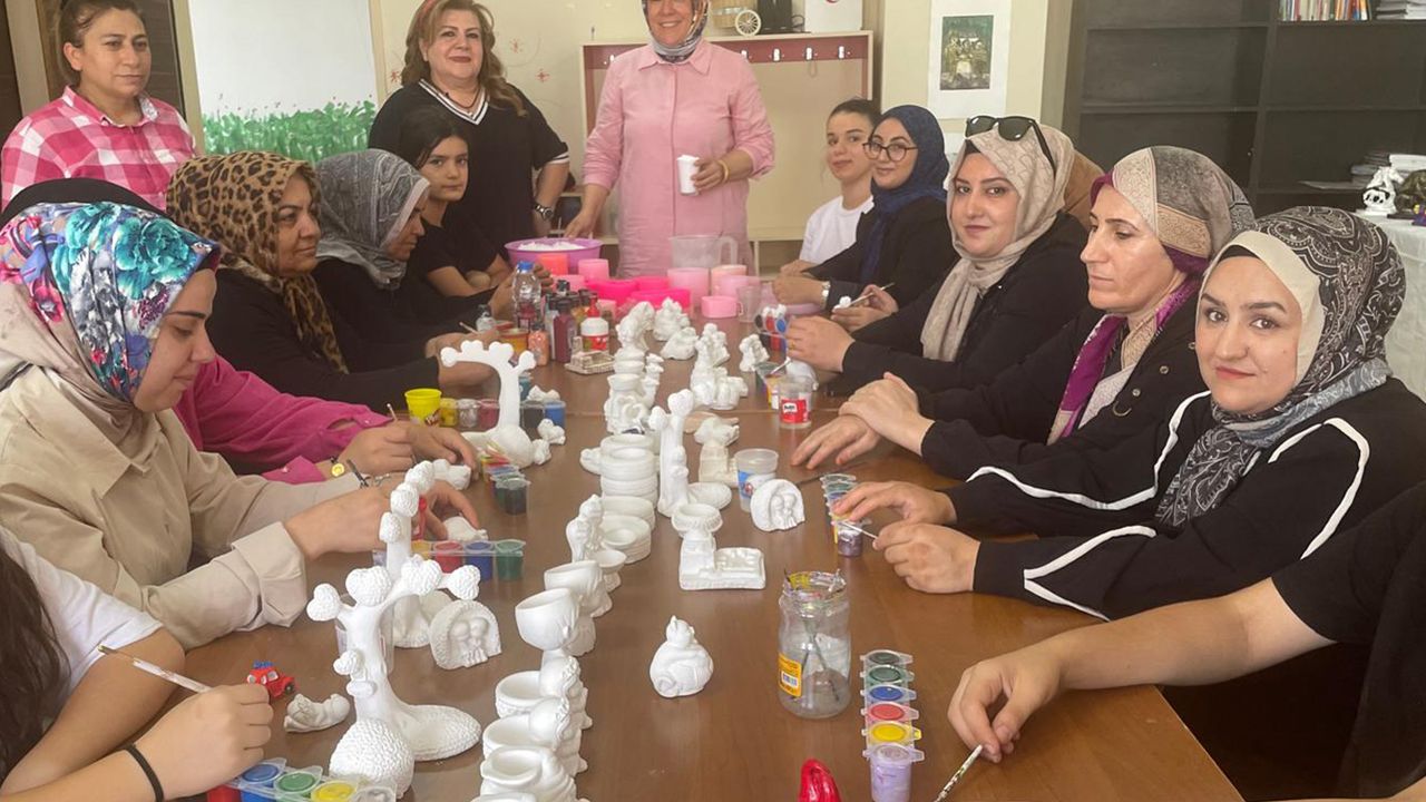 Kursiyerler, kursa katılarak hem el sanatları öğreniyor hem de yaptıkları ürünleri satarak gelir elde ediyor.