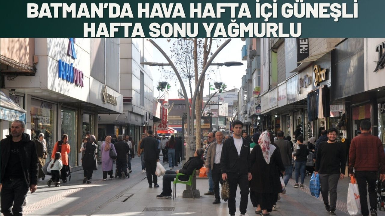 Meteoroloji verilerine göre Batman’da hafta içi günlerinde hava genel olarak açık ve güneşli olacak. Sıcaklıkların gündüz saatlerinde 11 ile 14 derece arasında değişmesi beklenirken gece sıcaklıklarının ise 2 ile 4 derece arasında seyredeceği tahmin ediliyor.