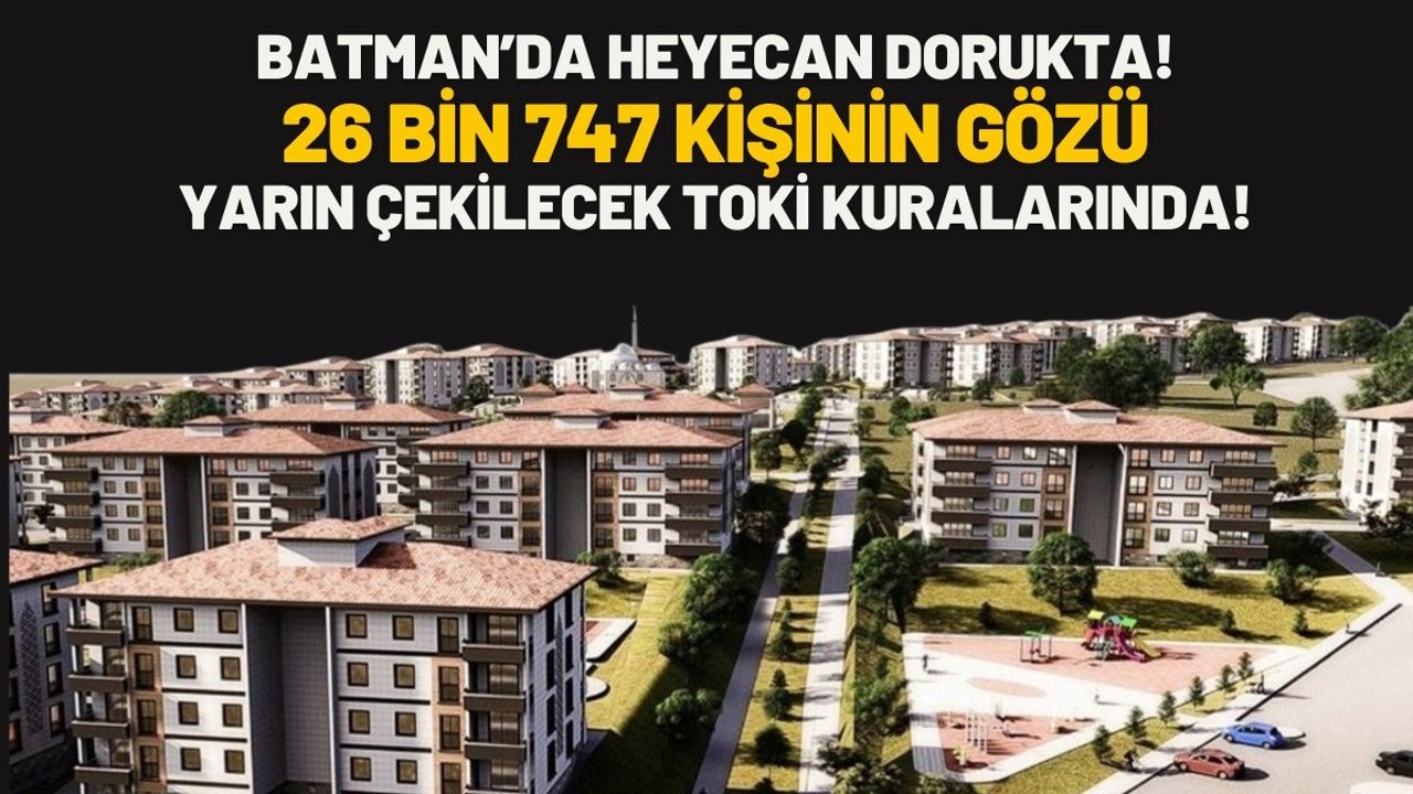 Türkiye genelinde yürütülen "500 Bin Sosyal Konut" projesinin Batman ayağında beklenen gün geldi. Toplamda 3 bin 800 konut için başvuruda bulunan 26 bin 747 vatandaş, yarın yapılacak kura çekimine kilitlendi. Şehirde konut ihtiyacına nefes aldırması beklenen projede, başvuru sayısının yüksekliği dikkat çekiyor.